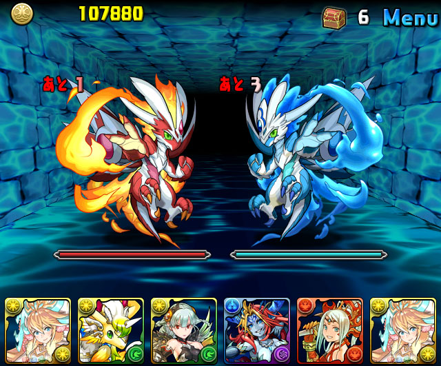 雙子龍・比捷爾,隊長技分別是滿血時火屬性和水屬性寵物的攻擊力4倍,主動技則是類似神秘龍大天狗魔石龍的隊長變更。注意本地下城不會提供心珠。另外,獲得經驗值的最高最低值差距相當大,刷本地城的時候可能需要特別留意一下。